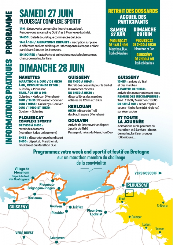 - Le Trail des Naufrageurs, 13 km, une épreuve 100% nature le long du littoral de la Côte des Légendes entre Kerlouan et Guissény, un parcours technique et plein de relances,